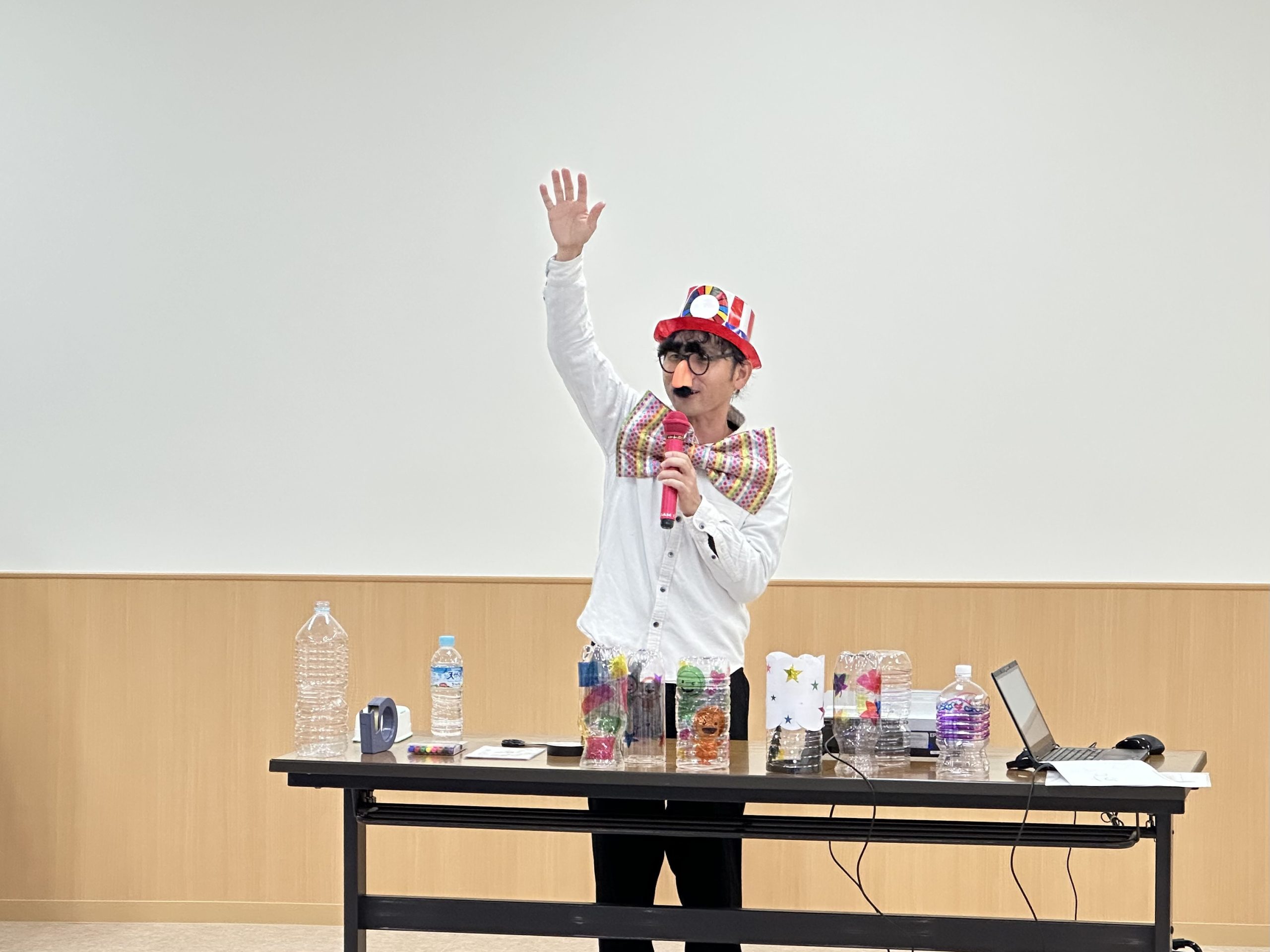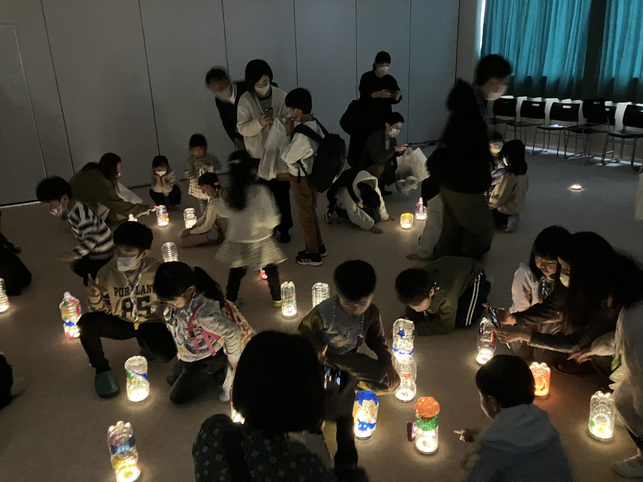 ワークショップでは、ペットボトルを活用した「エコランタン作り」や、身近なものを使った「防災ライフハック体験」を実施。特に、部屋を暗くして子どもたちが作ったランタンを一斉点灯した瞬間には歓声が上がり、自分の手で作ったランタンの灯りを楽しむ姿や、色とりどりのランタンを写真に収める姿が見られました。