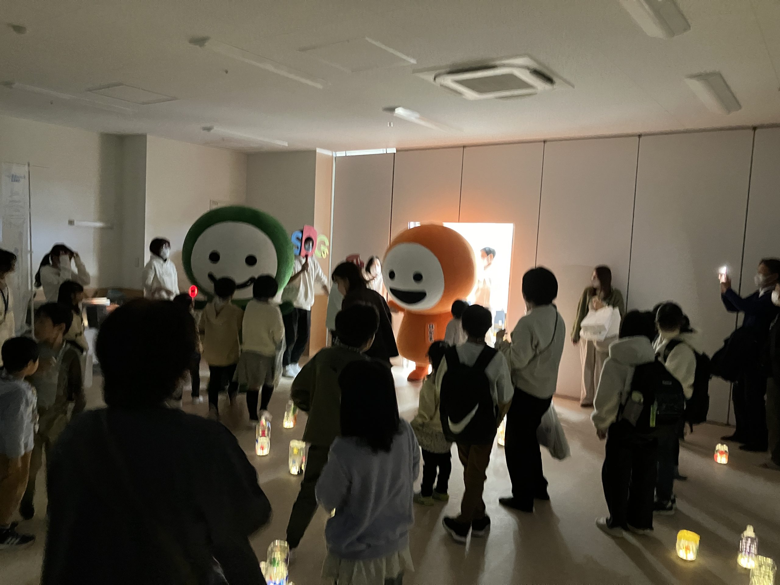 そしてランタンの灯りの中、なごみちゃんとひかるちゃんが登場すると子どもたちは大喜びで、楽しいふれあいのひと時を過ごしました。