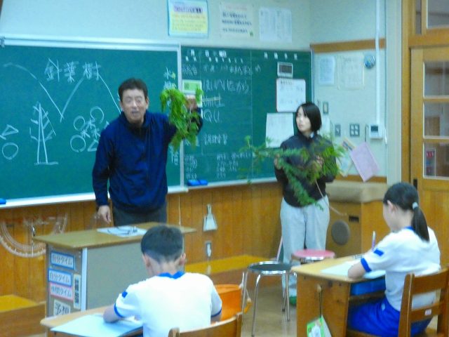 木とは?、林とは?、森とは?についてお話しして、対話方式で授業をしました。