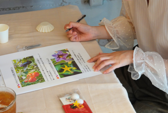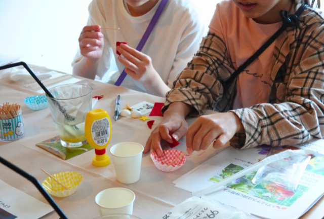 岐阜県関市にあるMilk&Puzzleにて、伝統工芸「つまみ細工」の技法を使って、夏野菜(トマトまたはナス)のストラップ作りを実施しました。野菜の花や実について知ってほしくて、野菜について楽しく学べる“ミニ講座”も同時開催。