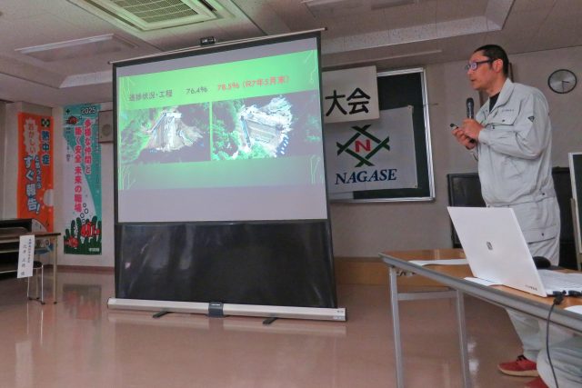また、後半には各現場担当者からリスクアセスメント(作業現場で発生する恐れのある危険性、有害性及びその危険度や重篤度の評価と措置)の取り組みについて発表いただきました。