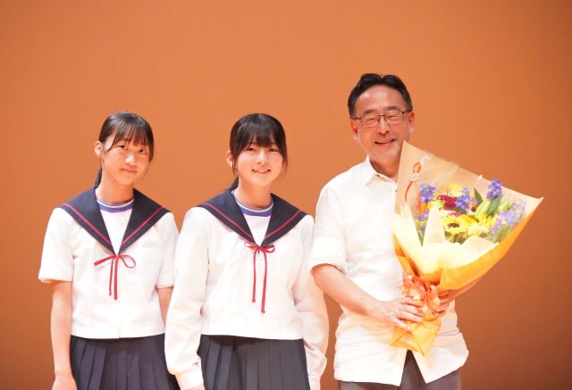 本講演会は地元の中学生に著名人によるホンモノの話を生で聴講いただき、今後の生活や進路選択に役立てていただくことを目的に実施しており、今年で10回目(講師は11人目)となりました。