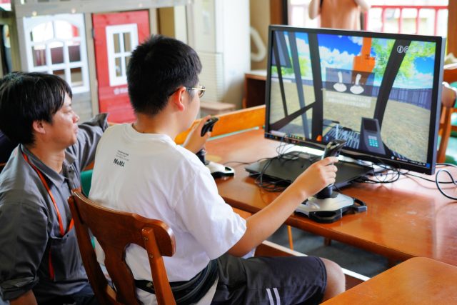 加えて建設機械シミュレーター(操作レバーを用いてモニター内の建設機械を操縦するソフト)の体験も行い、楽しみながら建設業のことや弊社の取り組みを知っていただく貴重な機会となりました。