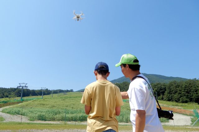 参加した子ども達は、弊社が工事現場で使用しているドローンを操縦しての空撮と撮影した写真にキャプションを付けて弊社のSNSで情報発信をする体験をしていただきました。