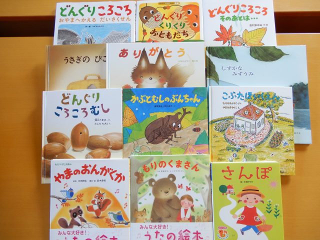 今年度は新たに園児の森遊びをサポートするプログラムを実施することになったため、森や自然に関する絵本12冊を選定し、保育園にて年長児の皆さんに直接お渡ししました。