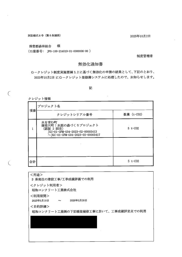 | 弊社は本年度より、地球環境への取組をさらに強化するため、オフセット・クレジット(カーボン・オフセット)の活用を本格的に開始しました。 令和7年度は、5工事現場において、合計40t-co2のクレジットを購入し、地球温暖化防止や森林保全に寄与するプロジェクトの支援を行っています。 これらの活動を通じ、持続可能な社会づくりに積極的に貢献してまいります。 |