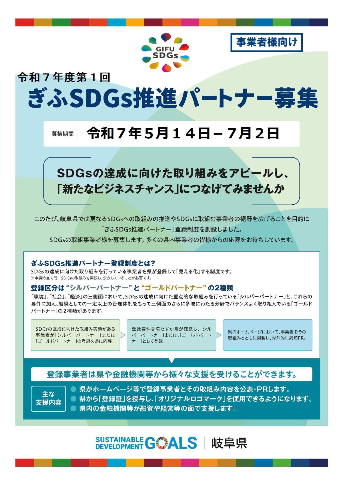 令和7年度第1回ぎふSDGs推進パートナー登録事業者を募集します!<募集終了>