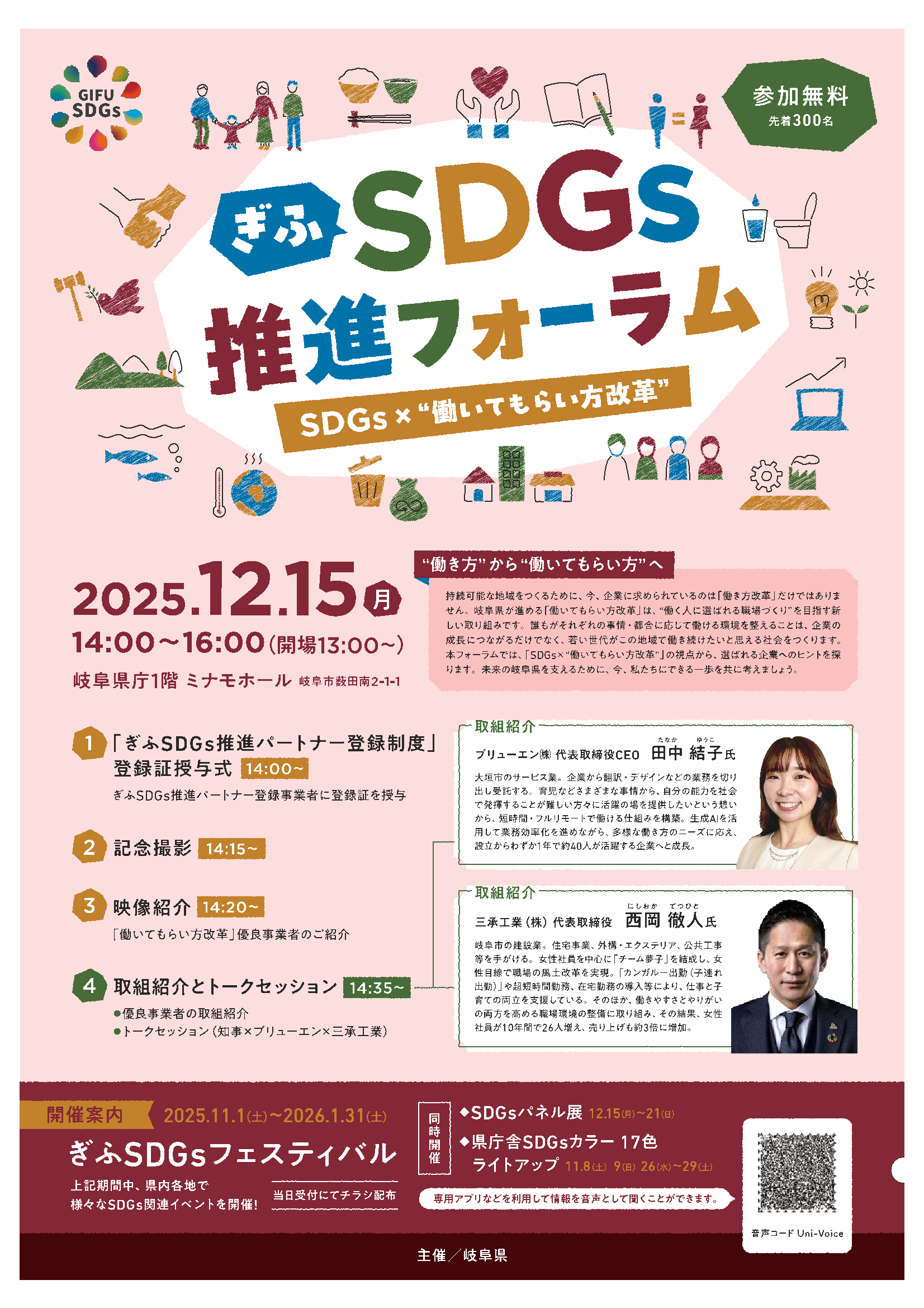 本フォーラムでは、「SDGs×”働いてもらい方改革”」の視点から、選ばれる企業へのヒントを探ります。未来の岐阜県を支えるために、今、私たちにできる一歩を共に考えましょう。