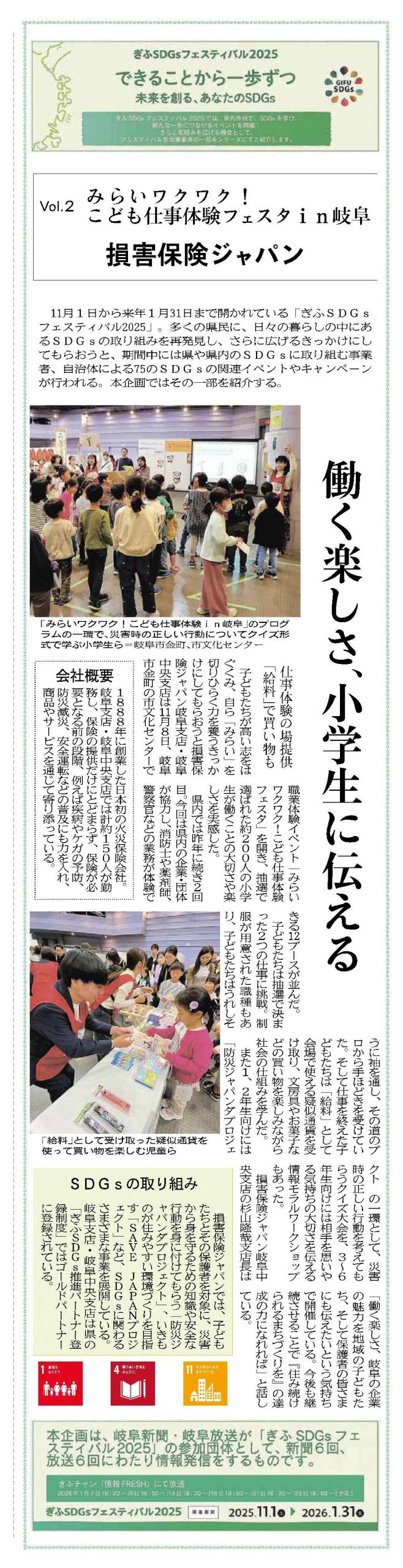 (損害保険ジャパン)みらいワクワク!こども仕事体験フェスタin岐阜